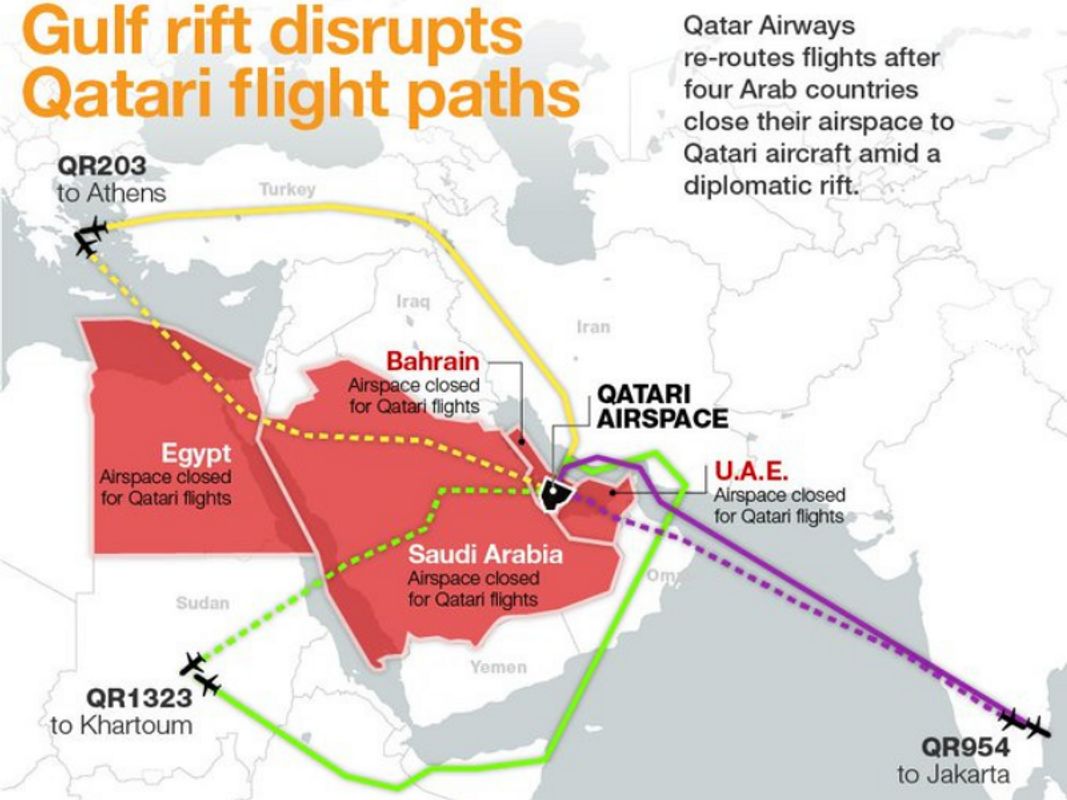Así debió re-dibujar sus vuelos Qatar para cumplir con las sanciones de la CCG.