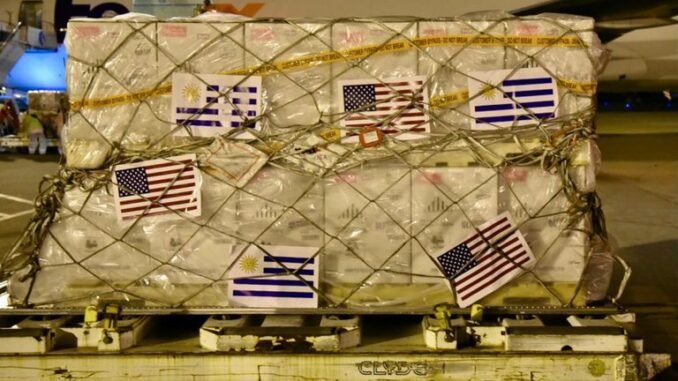 Las autoridades del Gobierno de Uruguay recibieron este jueves en Montevideo la donación realizada por Estados Unidos de 500.000 dosis de la vacuna del tipo ARNmensajero del laboratorio Pfizer, como parte del plan de lucha mundial contra el COVID-19 que se ha trazado la Casa Blanca.