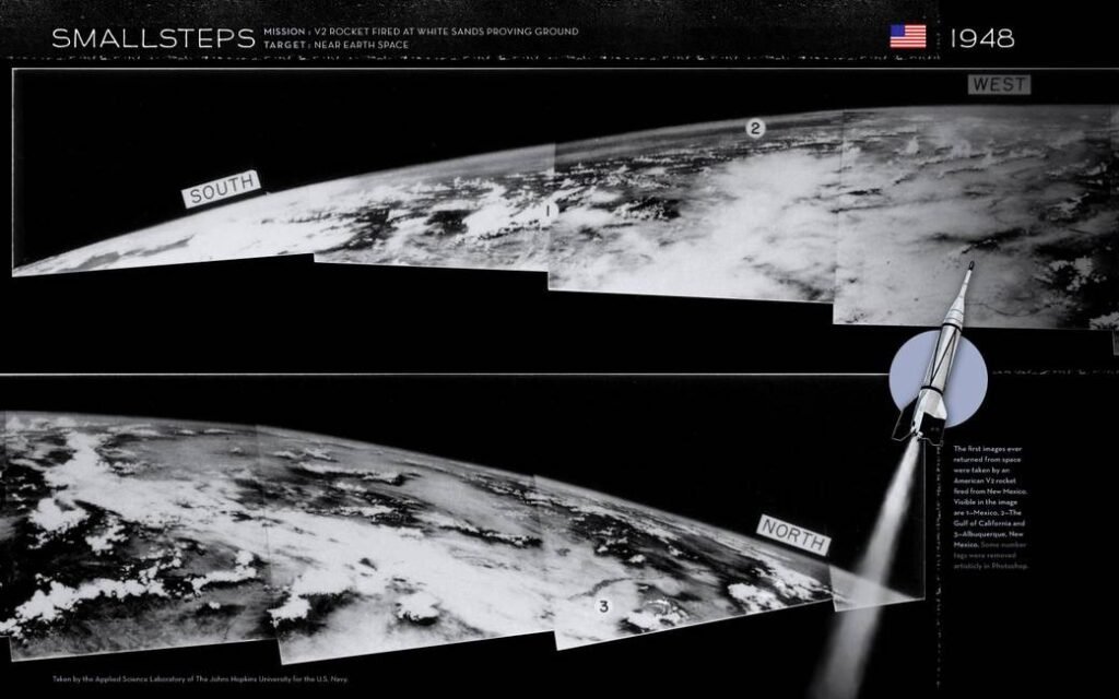 6.- La primera fotografía de la Tierra: la cámara que capturaría las primeras imágenes de nuestro planeta desde el espacio fue instalada por los americanos en un cohete V-2, un misil balístico requisado a los alemanes durante la Segunda Guerra Mundial. La serie fue obtenida en 1947.