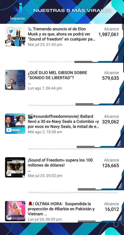 El fenómeno ocurrió con un artículo dedicado al impacto cultural de la película Sound of Freedom, un filme internacional que aborda el tema de la trata y el tráfico de menores, generando debate y movilización en múltiples países.