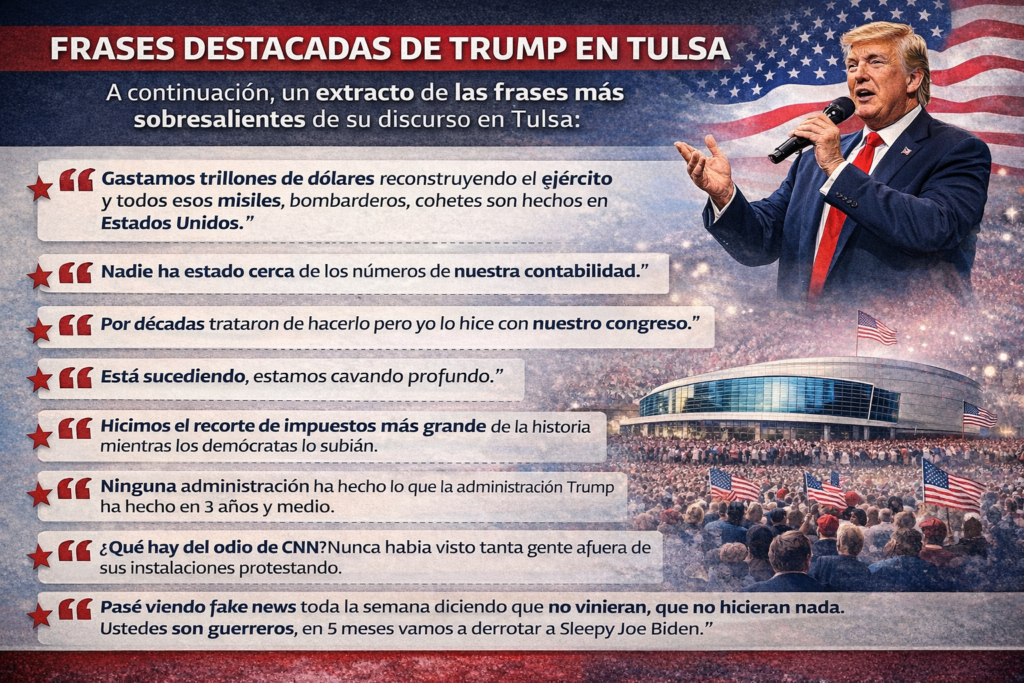 Uno de los momentos más representativos del estilo político de Trump fue su rally en Tulsa, Oklahoma.