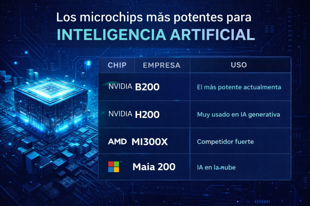 El microchip más potente del mundo se ha convertido en una pieza clave para el desarrollo de la inteligencia artificial moderna. Empresas tecnológicas como Nvidia, AMD y Microsoft compiten por crear procesadores capaces de ejecutar modelos de IA cada vez más complejos.